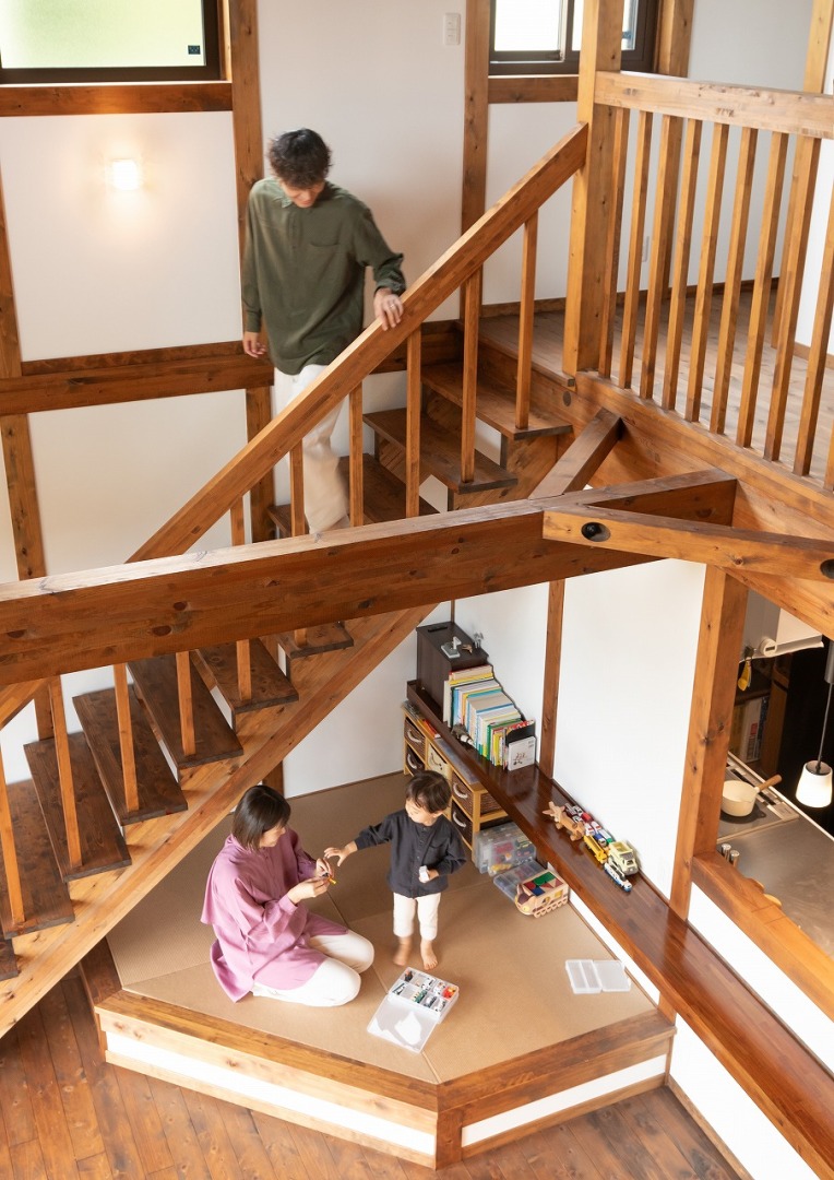 建物を支える構造材であると同時に、家族の歴史を見守る存在でもあります。