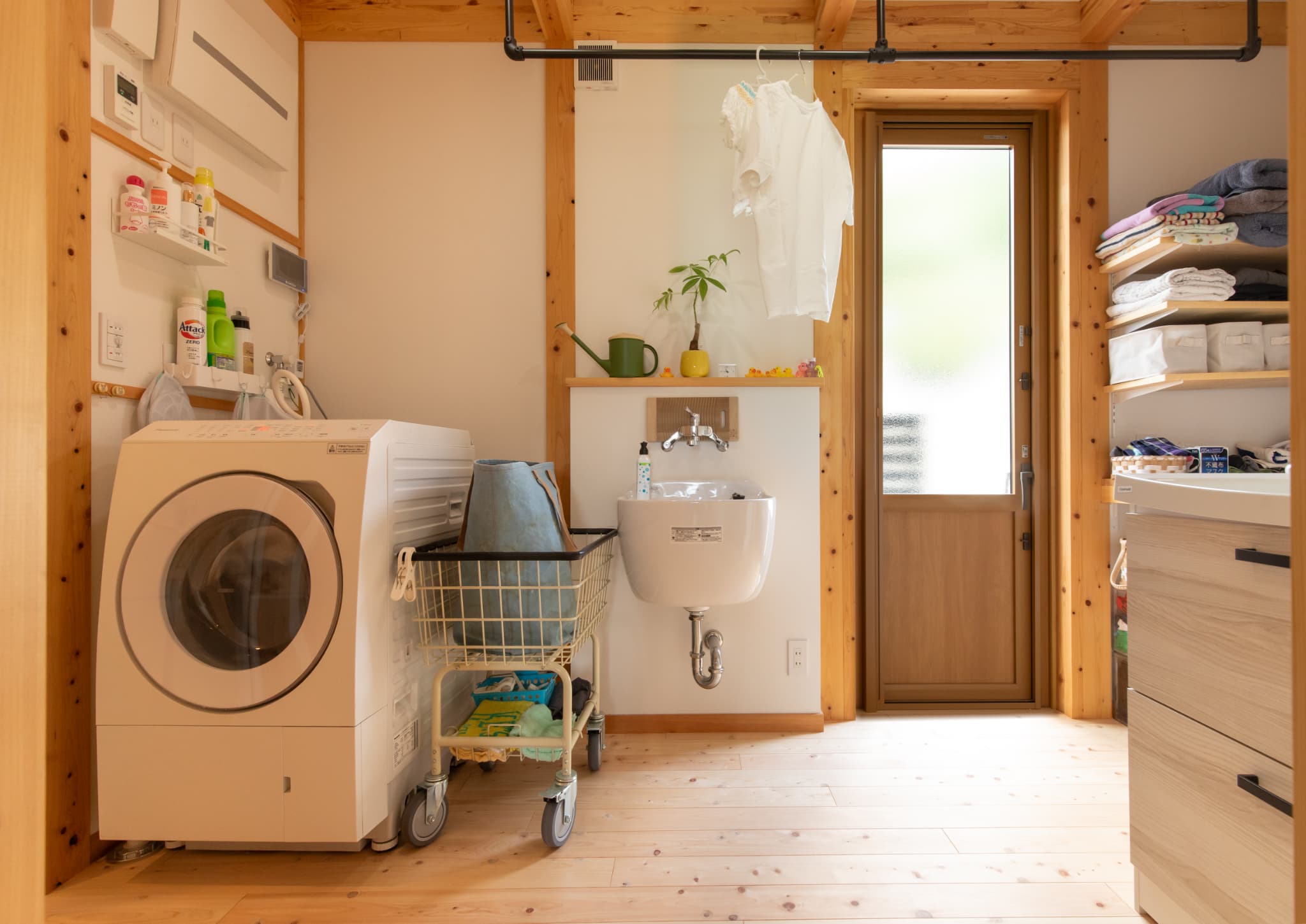 キッチンや洗面には造作カウンターを設え、機能性と意匠性をさりげなく両立。