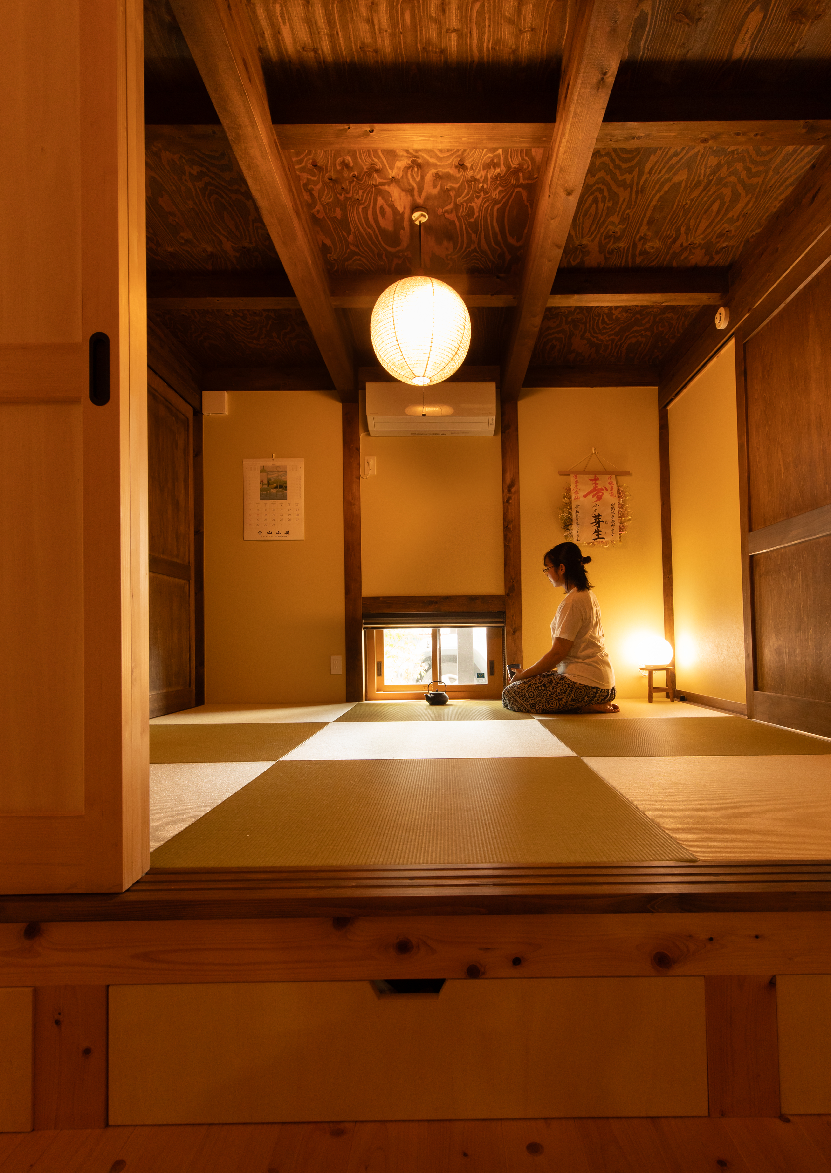 そして、私が大いにこだわったのが和室です。丸窓を設け、障子をつけ、下窓からは庭のモミジが見られるよう設計していただきました。どこかしらおばあちゃんの家を思わせる雰囲気の空間でありながら、現代の住まいにも自然に溶け込む仕上がりになったかなと満足しています。客間として使えるだけでなく、子どもの節句やお正月の飾りつけなど、季節を感じられる場所になりました。