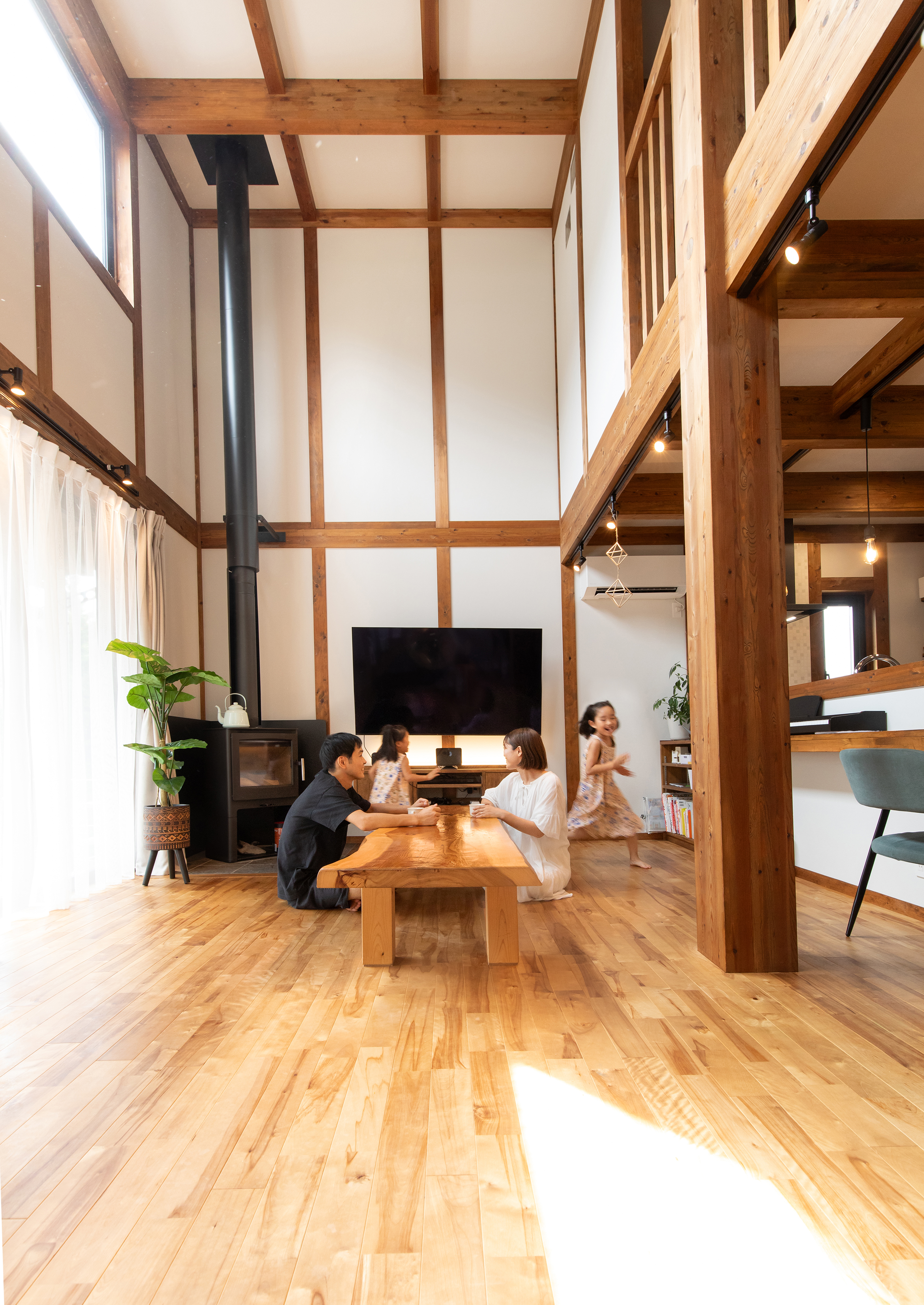 木の香りに包まれた室内、大きな吹き抜けの開放感。その空間に足を踏み入れた瞬間、夫婦そろって一目惚れでした。「こんな家に住みたい!」と自然に思えたことを覚えています。