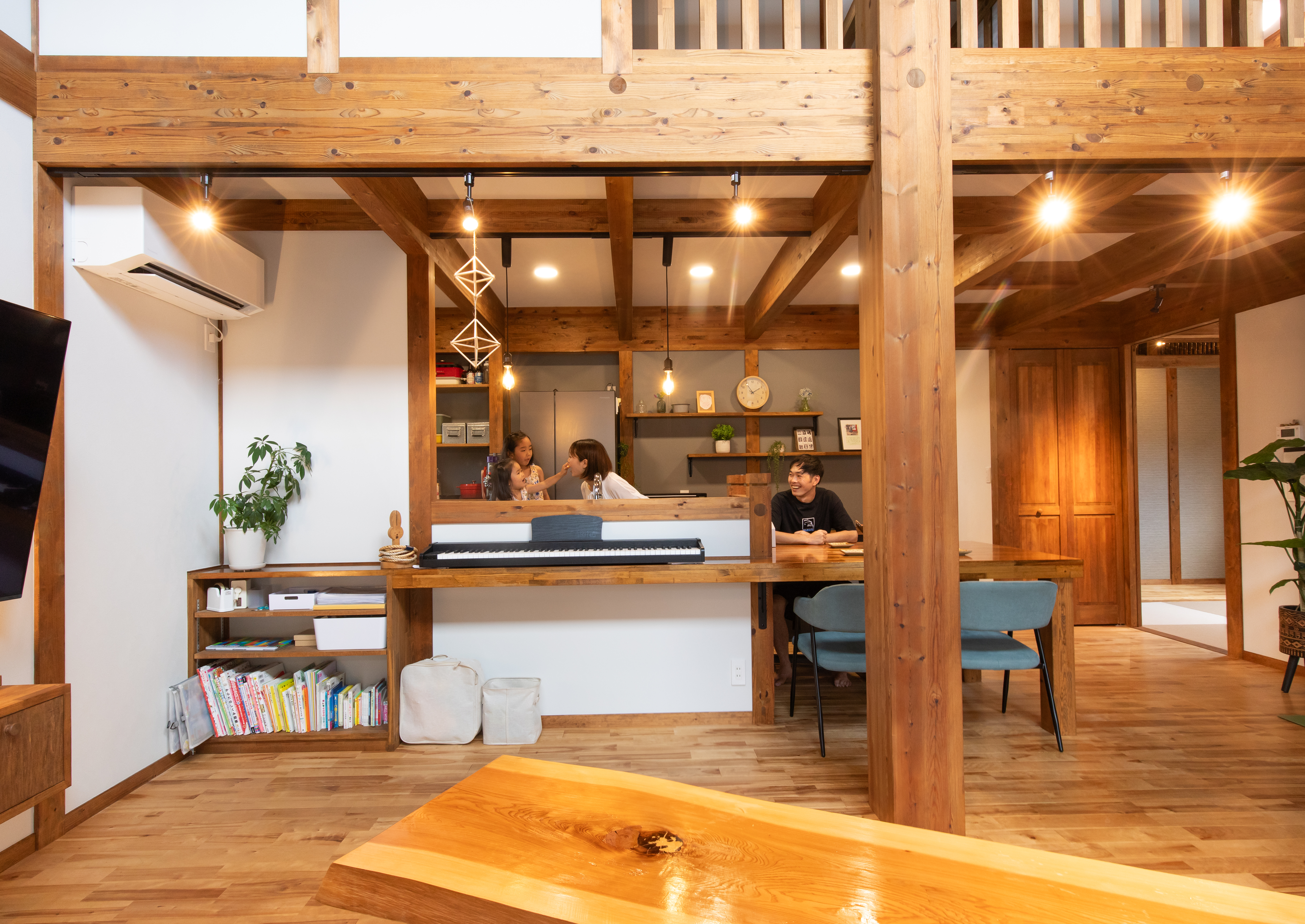 思い出深いのは、最初の営業担当の方の存在です。その方がとても親身で、照明や装飾を決める際にも丁寧にサポートしてくださいました。和室の照明を標準仕様にする予定でしたが、予算を考慮してサービスでグレードアップしてくださったこともありました。あと、棟梁にいただいたリビングの一枚板のテーブルも特別な存在です。